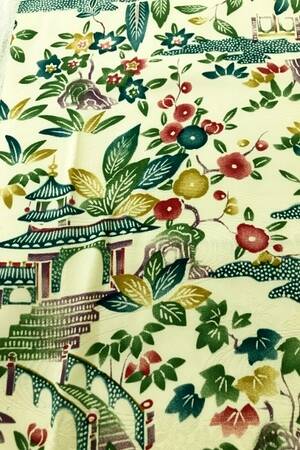 Magnifique soie tissée avec des maisons et des jardins japonais