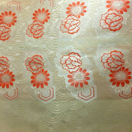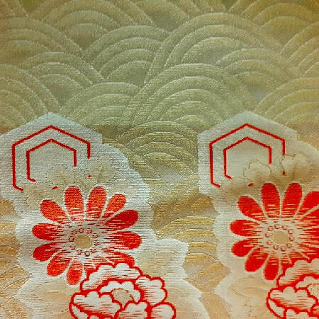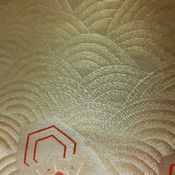 Original très exclusif antique/vintage Kinran bouddhiste en soie brochée avec seigaiha et fleurs en miroir. une pièce rare et étonnante. Travaillée avec de l'or.
