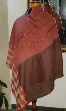 Poncho japonais 100 % cachemire avec dentelle vintage neuf