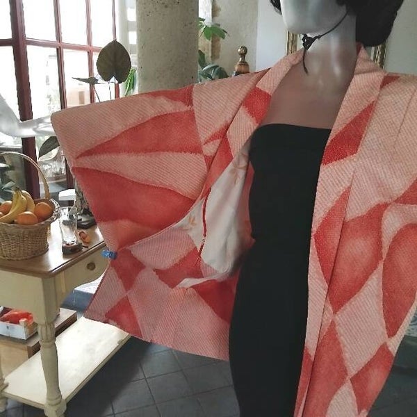 Haori shibori vintage multicolore rose abstrait motif vintage neuf