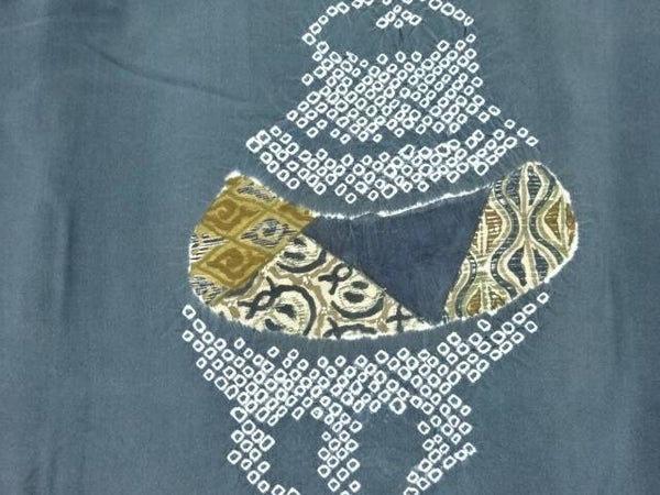 Haori homme ancien 'Cérémonie du thé' bleu-vert teint à la boue