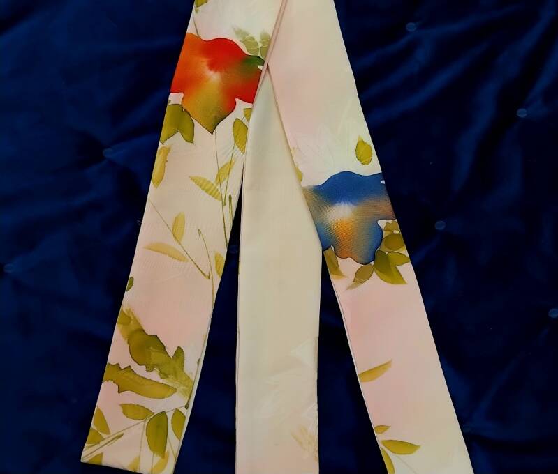 Ceinture souple en soie ou écharpe étroite aux tons naturels et relief. La couleur est rose saumon. Fabriquée à partir de soie de kimono antique. Pièce unique, 1 seul exemplaire en stock.